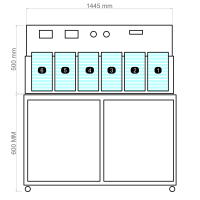 Macchina Galvano da banco con vasche in polipropilene litri 5 disponibili in versioni multivasche da 4 e 6 . Disponibili con 2 e 3 riscaldatori ed agitatori , oltre che con la possibilita di regolare il voltaggio oppure il doppio controllo di volts e ampere minuto . Tutte con radrizzatore di potenza massima 30 ampere.