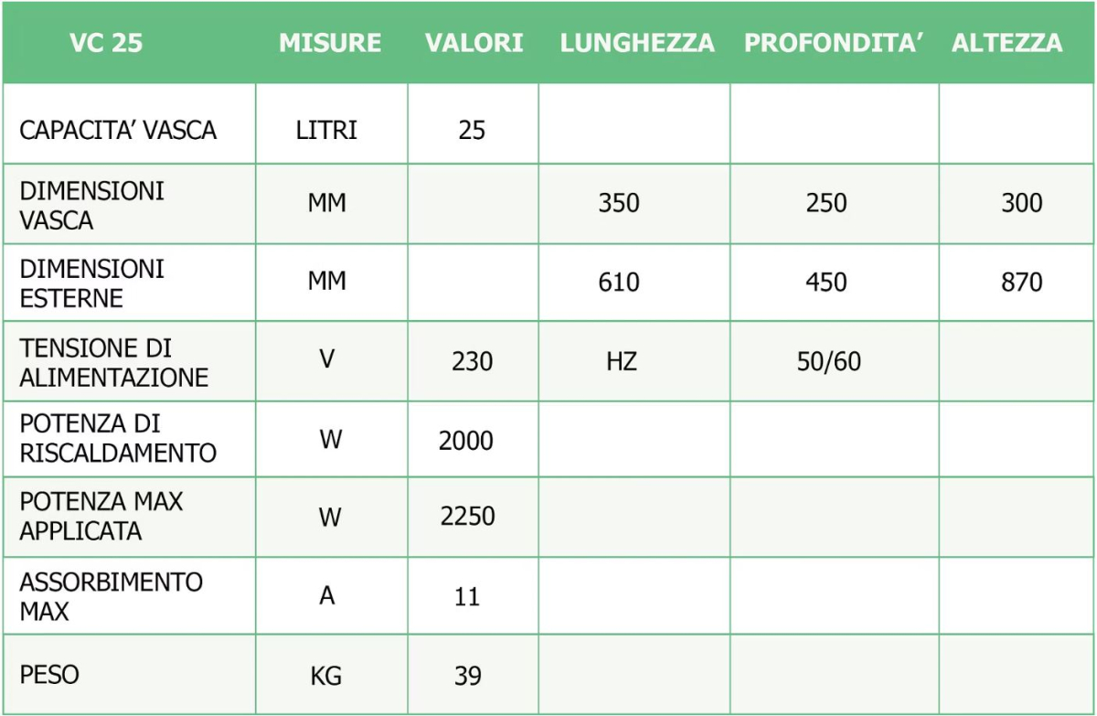 - Capacità volume 25 lt