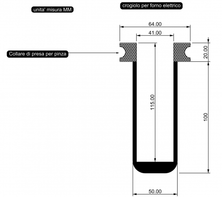 - IL CROGIOLO IN GRAFITE NON HA UNA CAMICIA DI CERAMICA DI CONTENIMENTO , SE USURATO NON SOVRACARICARLO PER EVITARE ROTTURE DELLO STESSO.