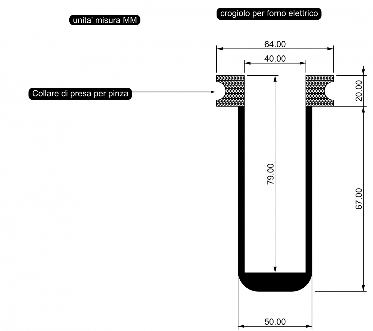 - IL CROGIOLO IN GRAFITE NON HA UNA CAMICIA DI CERAMICA DI CONTENIMENTO , SE USURATO NON SOVRACARICARLO PER EVITARE ROTTURE DELLO STESSO.