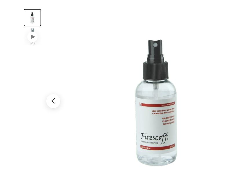 Rivoluzionario Firescoff® è un rivestimento ceramico nanotecnologico spray che fornisce un flusso di saldatura ultra- consistente e contemporaneamenteuna protezione imbattibile contro le incrostazioni. Oltre a prottegere Gemme sintetiche/preziose e Lghe e Metalli preziose e vili . Completamente solubile in acqua , Firescoff elimina la necessità di soluzioni di decapaggio a base acida , rendendolo più sicuro , più veloce e più conveniente per tutte le attività di saldobrasatura. Basta spruzzarlo , saldare il pezzo e risciacquare con acqua tiepida .Il flusso non è infiammabile , senza fluoro e cloruro .