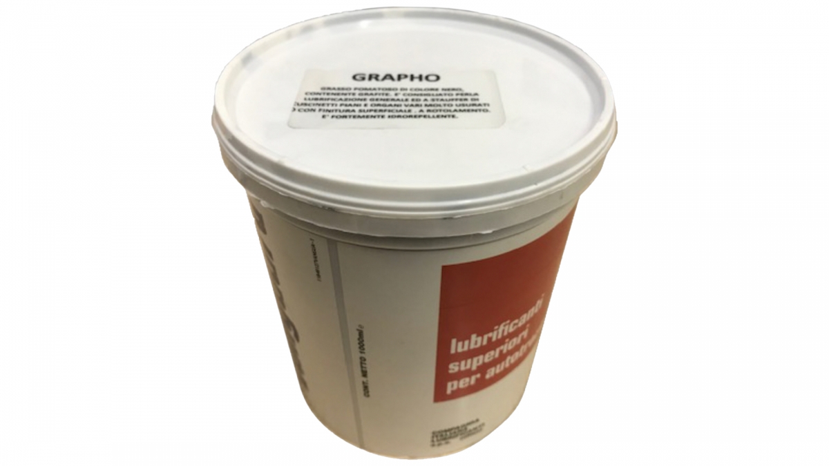 GRASSO POMATOSO "GRAPHO"DI COLORE NERO AL CALCIO ANIDRO CONTENENTE GRAFITE. PREVIENE L'USURA DELLE GUARNIZIONI DALLE ALTE TEMPERATURE E NEL CONTEMPO FAVORISCE LA TENUTA DEL VUOTO DELLE SUPERFICI ROVINATE O NON COMPLANARI DELLE STESSE .