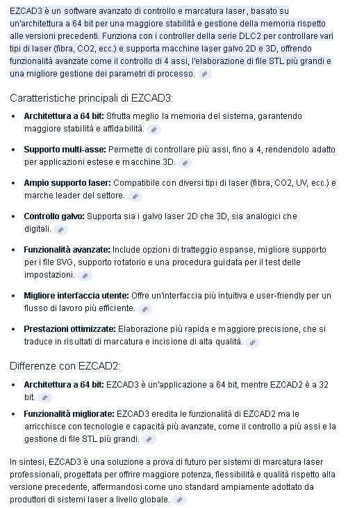- Funzionalità migliorate: EZCAD3 eredita le funzionalità di EZCAD2 ma le arricchisce con tecnologie e capacità più avanzate, come il controllo a più assi e la gestione di file STL più grandi.