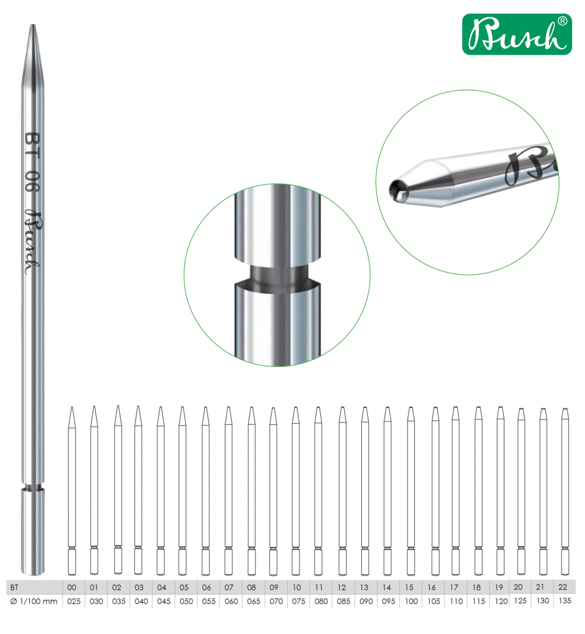 PALETTATORE-GRANITORE IN ACCIAIO BUSCH DA N.00 A N.15 CONF.10 PEZZI/ BUSCH STEEL BEADING TOOLS